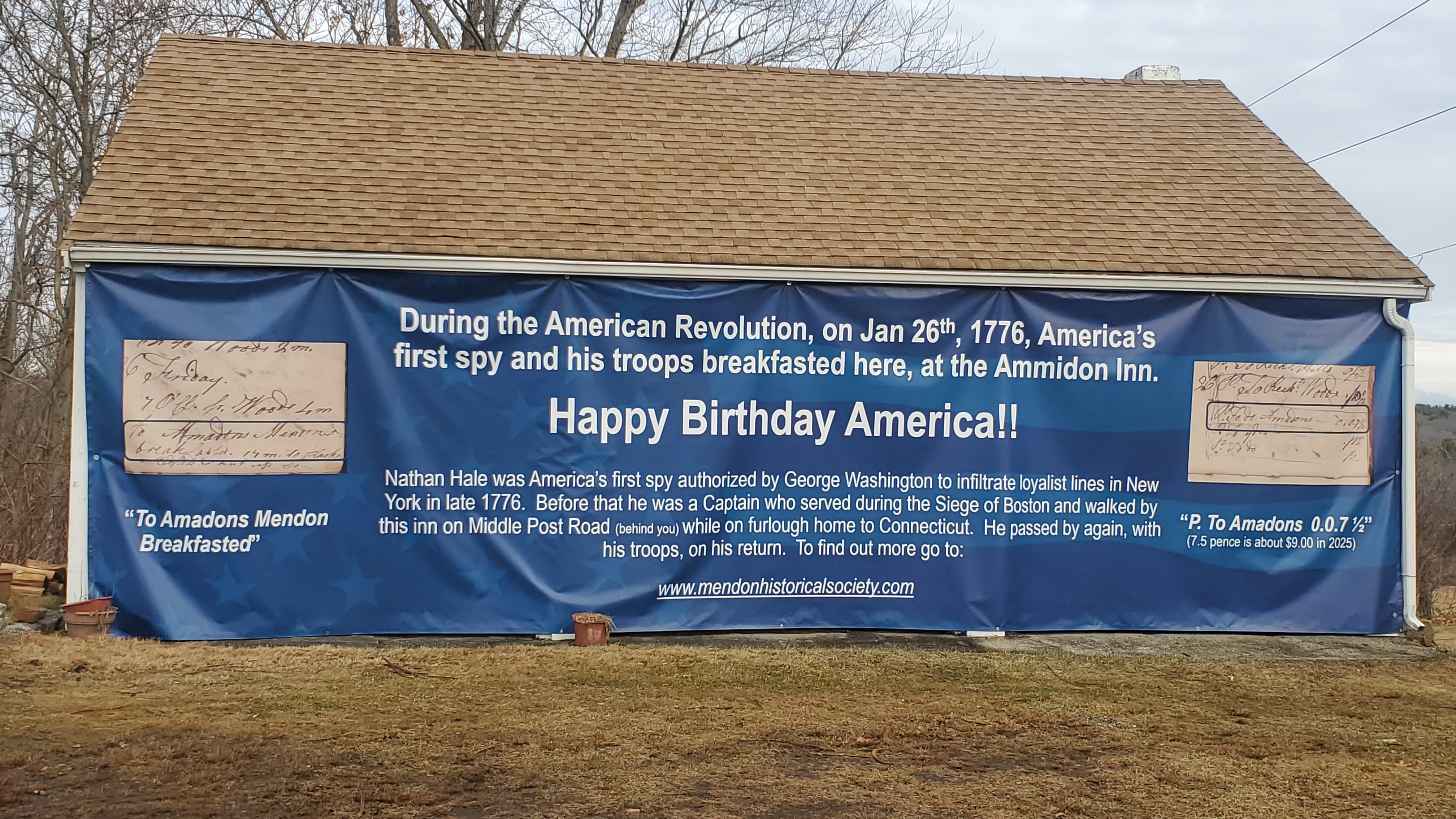 If you’ve driven through the intersection of Rte. 16 and Main Street recently, chances are you’ve seen the 8 x 30-foot banner next to the Ammidon Tavern. It’s hard to miss — which was Rich Schofield’s intent when he hung it. The banner wishes the…